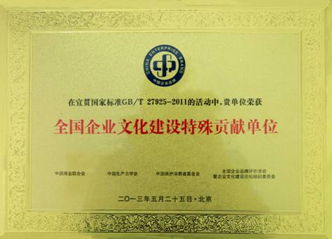 全國企業(yè)文化建設(shè)特殊貢獻單位