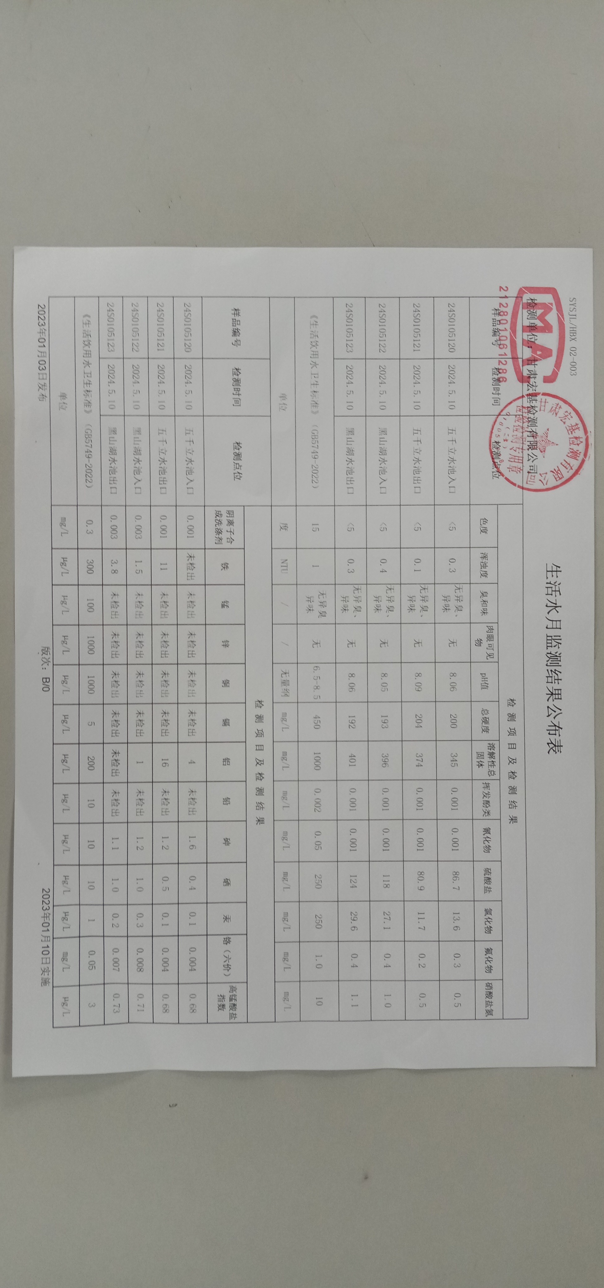 甘肅潤(rùn)源環(huán)境資源科技有限公司水源地水質(zhì)2024年第二季度公示
