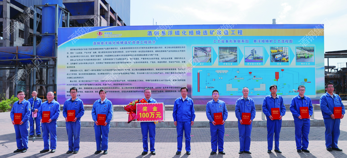 難選鐵礦資源高效利用攻關(guān)是幾代酒鋼選礦技術(shù)人員的不懈追求。手捧獎(jiǎng)牌,難選氧化鐵礦石懸浮磁化焙燒關(guān)鍵技術(shù)研究與工業(yè)應(yīng)用項(xiàng)目負(fù)責(zé)人陳毅琳心情十分激動(dòng):“懸浮磁化焙燒技術(shù)具有效率高、產(chǎn)能大、熱能利用好、勞動(dòng)生產(chǎn)率高、環(huán)境友好等優(yōu)勢(shì),實(shí)現(xiàn)工業(yè)化應(yīng)用后,與原強(qiáng)磁選工藝相比,鐵精礦品位提高11.55個(gè)百分點(diǎn),金屬回收率提高26.07個(gè)百分點(diǎn),真正實(shí)現(xiàn)了鐵礦資源的吃干榨凈,大幅度提高了難選鐵礦資源的高效利用水平。”目前,項(xiàng)目團(tuán)隊(duì)正在大力推廣應(yīng)用該項(xiàng)目成果,努力把“盆景”變成“風(fēng)景”,為公司高質(zhì)量發(fā)展作出貢獻(xiàn)。
