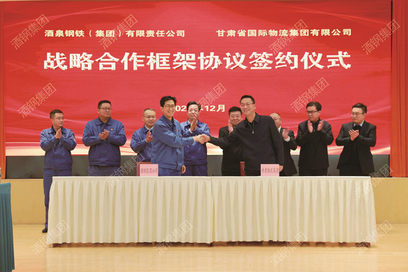 12月16日上午,甘肅國際物流集團(tuán)黨委書記、董事長(zhǎng)王月成一行來訪酒鋼。集團(tuán)公司黨委書記、董事長(zhǎng)陳得信與客人座談。甘肅國際物流集團(tuán)總經(jīng)理、黨委副書記李建軍,黨委常委、副總經(jīng)理劉軍勛;酒鋼集團(tuán)公司總經(jīng)理、黨委副書記程子建,黨委常委、副總經(jīng)理成東全參加座談。雙方企業(yè)簽署戰(zhàn)略合作框架協(xié)議。圖為簽約現(xiàn)場(chǎng)。