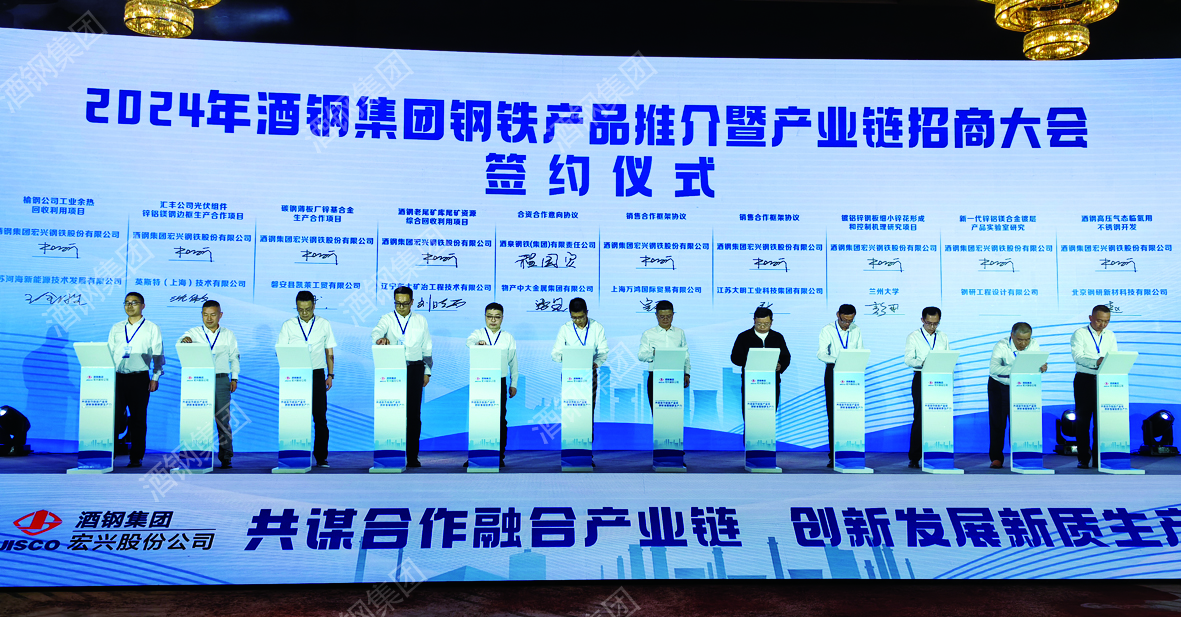 本報訊(記者 楊昊龍)4月28日上午,酒鋼集團(tuán)鋼鐵產(chǎn)品推介暨產(chǎn)業(yè)鏈招商大會在成都召開,大會主題為“共謀合作融合產(chǎn)業(yè)鏈 創(chuàng)新發(fā)展新質(zhì)生產(chǎn)力”。來自政府部門、鋼鐵行業(yè)咨詢及服務(wù)機(jī)構(gòu)、酒鋼產(chǎn)業(yè)鏈合作方等行業(yè)領(lǐng)域的260余人參加會議,圍繞推進(jìn)新型工業(yè)化、打造新質(zhì)生產(chǎn)力等一系列戰(zhàn)略部署,共話合作、共尋商機(jī)。