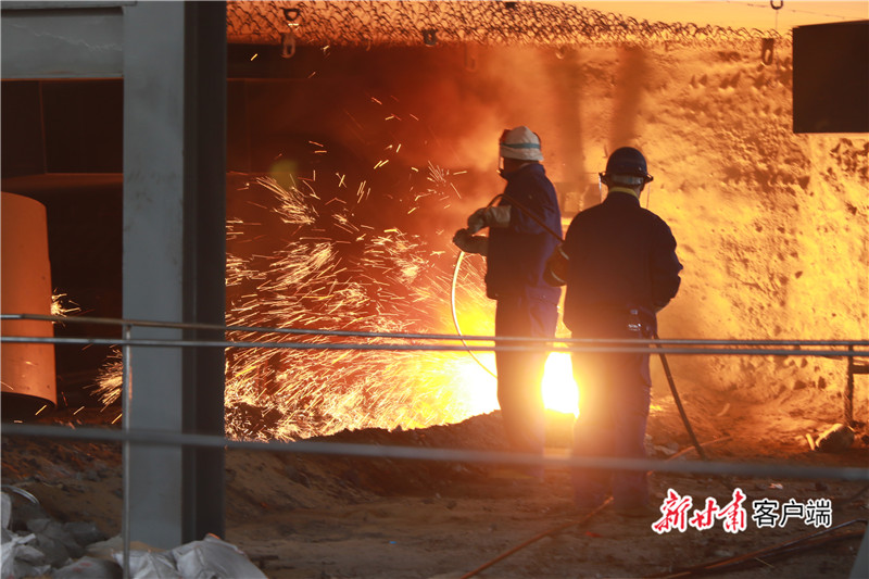 “鐵水出來啦!”職工們激動地歡呼起來,主控室內(nèi)掌聲如潮,高爐平臺鞭炮齊鳴。噴涌而出的鐵水,像一條“火龍”沿著出鐵溝蜿蜒流動,最終匯入爐臺下的鐵水罐中。